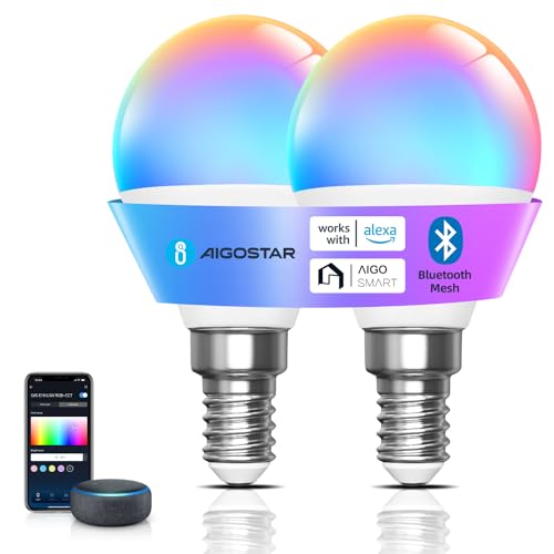 Aigostar - G45 Mesh Bluetooth Smart Lampa. 2700–6500K, RGB Dimbar. E14-gänga, 6,5W, 555lm. Smart LED-lampa Kompatibel med Alexa. Fjärrkontroll ingår. 2-pack