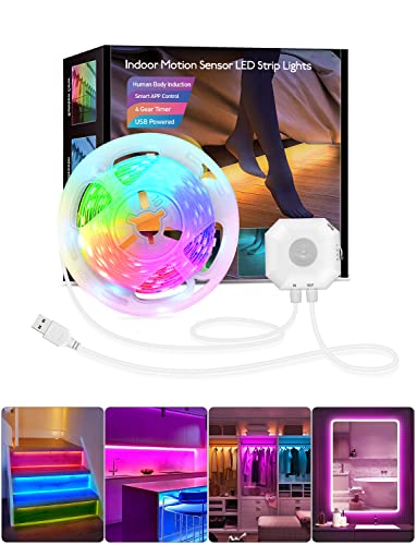 Daymeet rörelsesensor sänglampor, 5 m RGB skåp LED-remsa lampor med automatisk avstängningstimer appkontroll nattlampa garderobslampor för hall, kök, sovrum, trappa