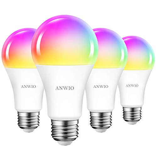 ANWIO 4 x 12 W Smart RGB WiFi LED-lampor, A70 motsvarar 100 W, 1521 lumen, fungerar med Alexa, Google Home och Smart Life.