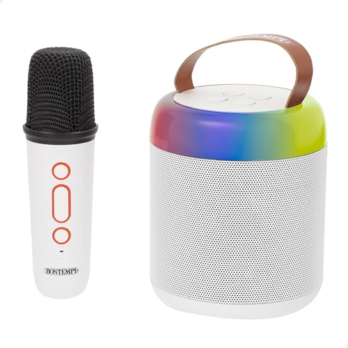 ColorBaby Bontempi trådlös minihögtalare med mikrofon, RGB LED-lampor som lyser upp till rytm, Bluetooth, radio, USB-ingång, hjälpmedel, bärbar och kompakt, fester eller spel (39220)