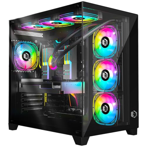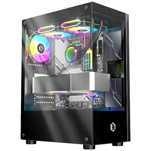 EMPIRE GAMING - Crystal Gaming PC Case - ARGB Mid Tower ATX, Micro ATX och ITX -Frontpanel med 3D-spegeleffekt -1x120mm 3 Pin 5 Volt LED RGB adresserbar och 1x120mm standardfläktar -Svart
