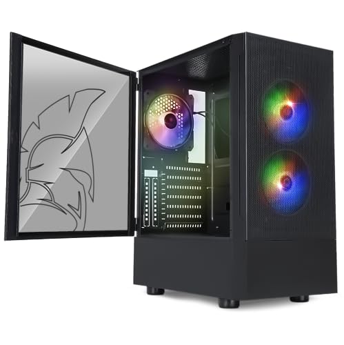 EMPIRE GAMING - Ruby Gaming PC Case - ARGB Mid Tower ATX, mATX, ITX - Mesh Front - Sidopanel i akrylglas -4 x 5 Volt RGB LED adresserbara fläktar 120 mm -MB Sync - Svart