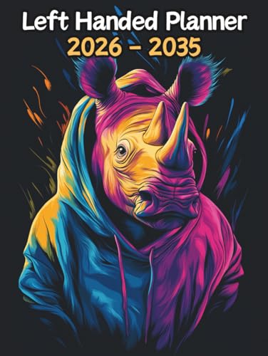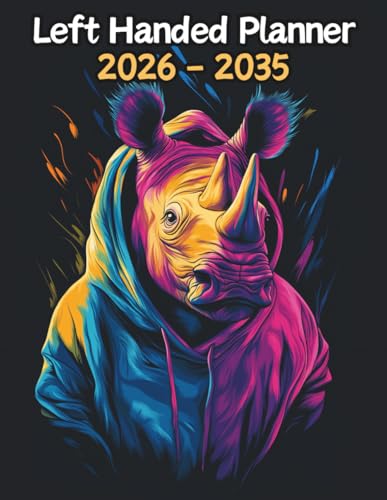 Rhinoceros Left Handed Planner: 10 Year Monthly | Large 120 Month Calendar | Gift For People Who Love Safari Animals, Wildlife Lovers | Ideal for ... and Busy Individuals | 8.5 x 11 Inches | v1