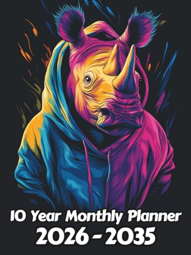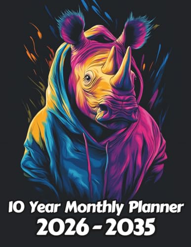 Rhinoceros 10 Year Monthly Planner: Large 120 Month Sunday to Saturday Calendar | Gift For People Who Love Safari Animals, Wildlife Lovers | Ideal for ... and Busy Individuals | 8.5 x 11 Inches | v8