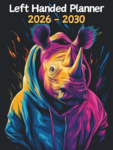 Rhinoceros Left Handed Planner: 5 Year Monthly | Large 60 Month Calendar | Gift For People Who Love Safari Animals, Wildlife Lovers | Ideal for ... and Busy Individuals | 8.5 x 11 Inches | v1