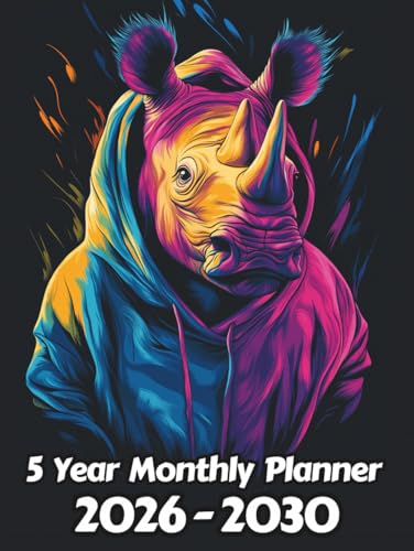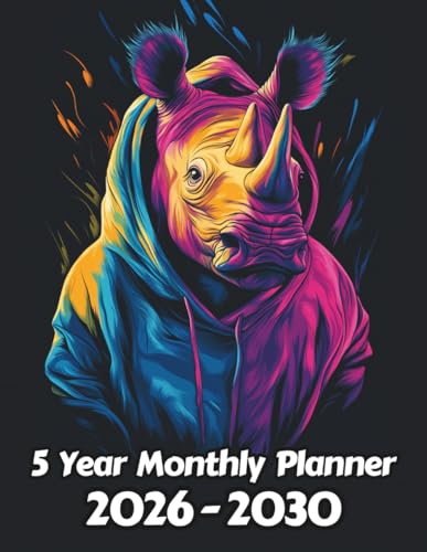 Rhinoceros 5 Year Monthly Planner: Large 60 Month Sunday to Saturday Calendar | Gift For People Who Love Safari Animals, Wildlife Lovers | Ideal for ... and Busy Individuals | 8.5 x 11 Inches | v1