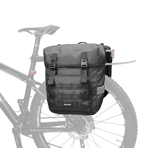 Rhinowalk Cykelväska, dubbelpacksväskor, sadelväskor för cyklar med bagagehållare, med bärhandtag och reflekterande kant, professionella cykeltillbehör, 40 l svart