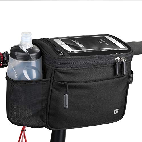 Rhinowalk väska för styre, cykel, cykelväska främre styre, cykelkorg, mountainbike, vägcykel, pendlaraxelväska, professionella cykeltillbehör svart + svart