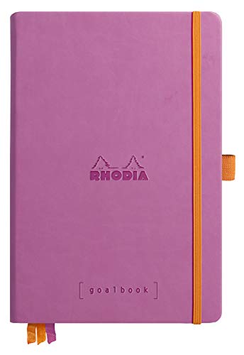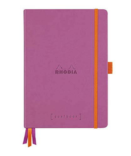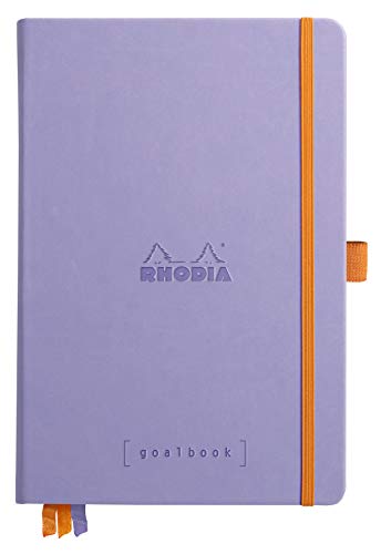 RHODIA 118781C - Carnet Rigide Bullet Journal Goalbook Lilas - A5 - Pointillés Dot - 240 pages - Papier Clairefontaine Ivoire 90g - 3 Rubans, Fermeture Élastique - Couverture Simili Cuir