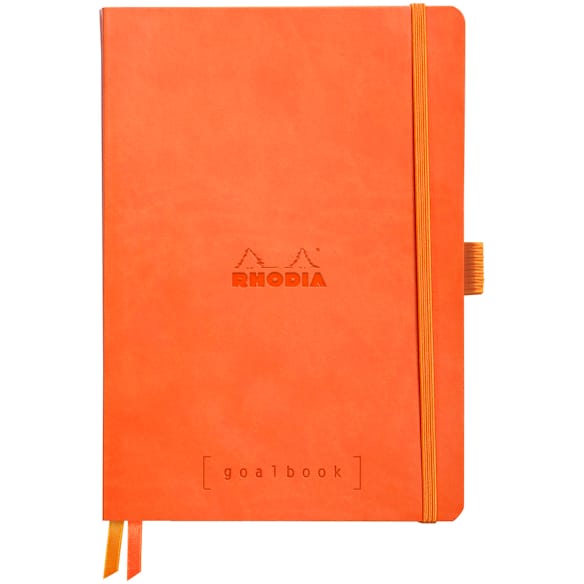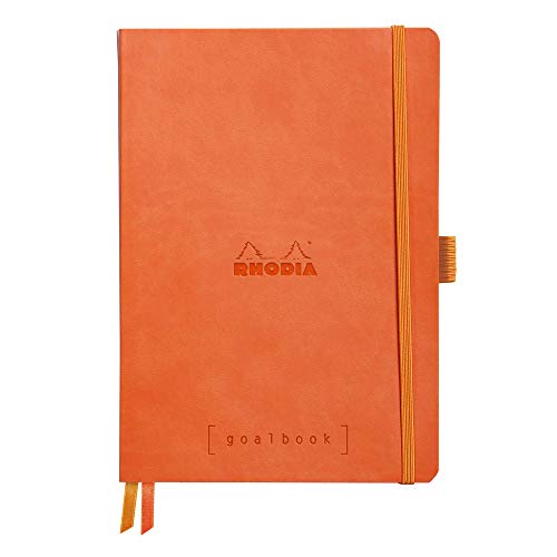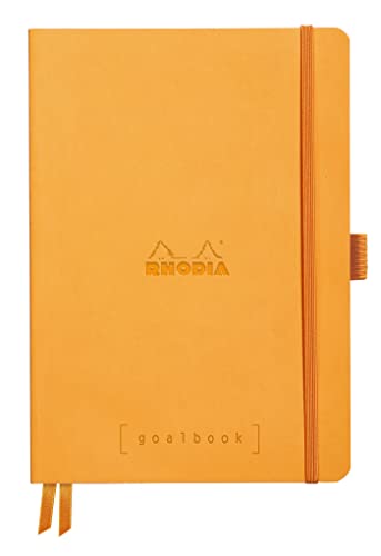 Rhodia 117775C Anteckningsbok Goalbook (DIN A5, 14,8 x 21 cm, rutig, praktisk och trendig, med mjukt lock, 90 g, elfenbensfärgat papper, 120 ark, elastiskt band, bokmärken) 1 st, orange