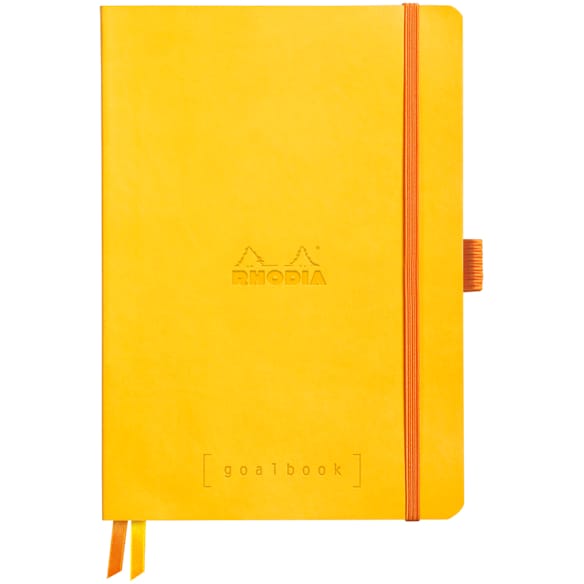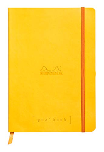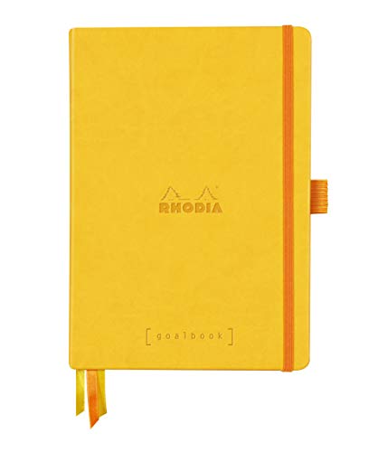 Rhodia 117756C Anteckningsbok Goalbook (DIN A5, 14,8 x 21 cm, prick, praktisk och trendig, med mjukt lock, 90 g, elfenbenfärgat papper, 120 ark, elastiskt band, bokmärken) 1 st, gul