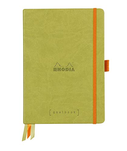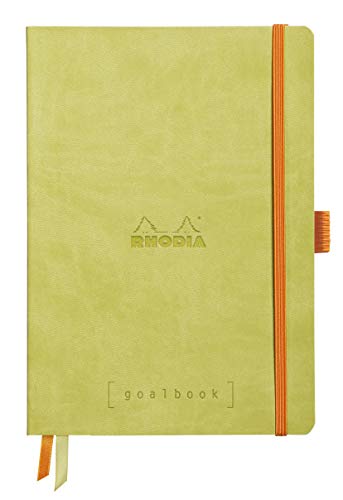 Rhodia 117804C – anteckningsblock mjukt fodral Rhodiarama Goalbook DIN A5 (14,8 x 21 cm), 120 ark, DOT, 2 bokmärkesband, elastisk stängning, skydd av konstläder salvia, 1 styck
