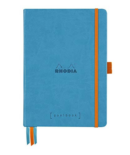 RHODIA 194158C - Carnet Rigide Bullet Journal Goalbook Creation Eau - A5 15,5x21x2 cm - 100 pages Papier Clairefontaine Lavis Technique Blanc Uni 200 g/m - 2 Rubans - Couverture Simili Cuir