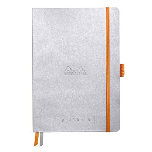 Rhodia 117761C Anteckningsbok Goalbook (DIN A5, 14,8 x 21 cm, rutig, praktisk och trendig, med mjukt lock, 90 g, elfenbensfärgat papper, 120 ark, elastiskt band, bokmärken) 1 st, silver