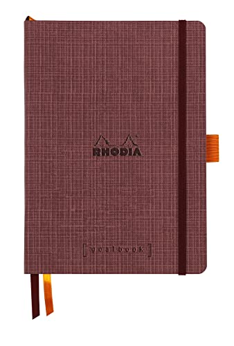 Rhodia 117802C – anteckningsblock mjukt fodral Rhodiarama Goalbook DIN A5 (14,8 x 21 cm), 120 ark, DOT, 2 bokmärkesband, elastisk stängning, skydd av konstläder rosenträ, 1 styck