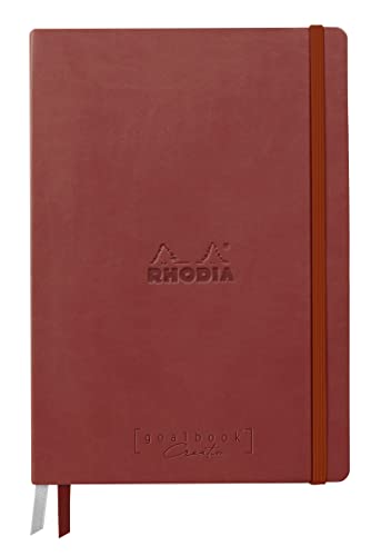 RHODIA 194153C - Carnet Rigide Bullet Journal Goalbook Creation Nacarat - A5 15,5x21x2 cm - 100 pages Papier Clairefontaine Lavis Technique Blanc Uni 200 g/m - 2 Rubans - Couverture Simili Cuir
