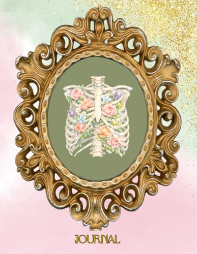 Floral Rib Cage Journal | Watercolor Skeleton Flowers Notebook | Gothic Spring Aesthetic | 140-Page Lined Journal 8.5 x 11