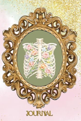 Floral Rib Cage Journal | Watercolor Skeleton Flowers Notebook | Gothic Spring Aesthetic | 140-Page Lined Journal 6 x 9