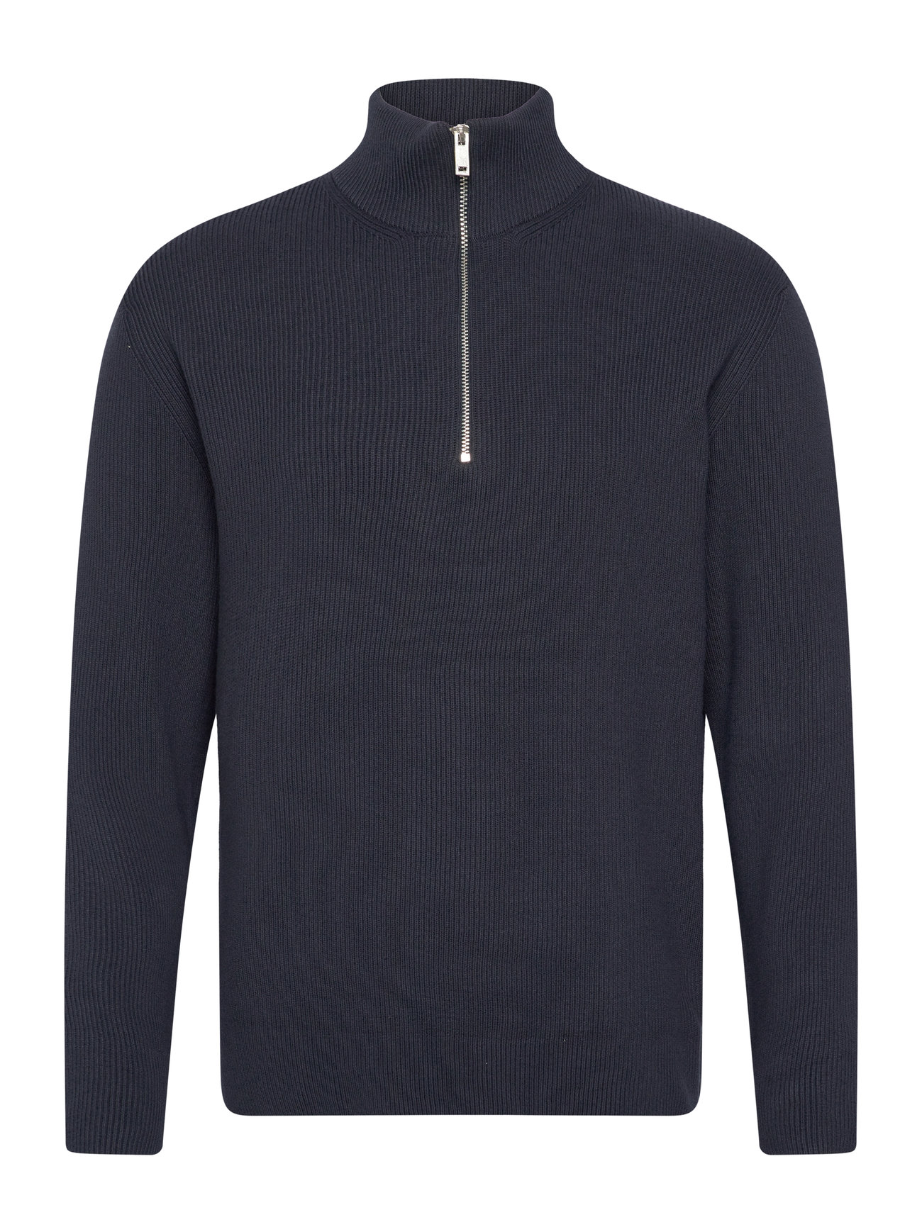 Lindex Sweater Rib Knit Halfzip Marinblå