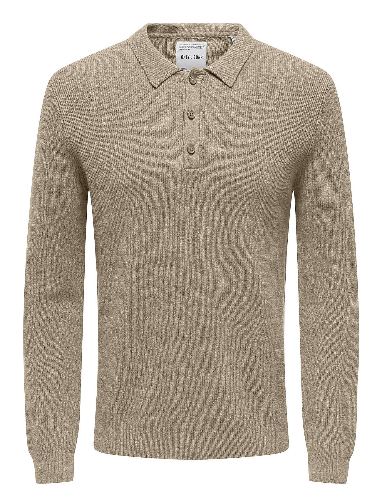 ONLY & SONS Onsphill Reg 12 Rib Ls Polo Knit Beige