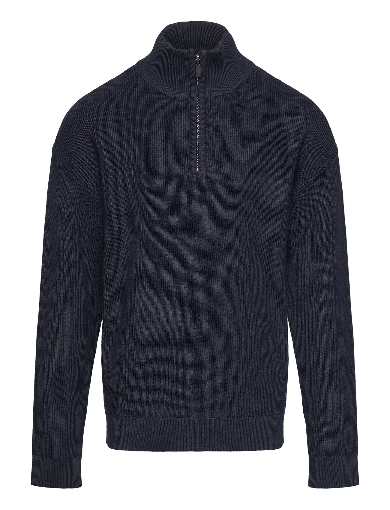 Knowledge Cotton Apparel 1/2 Neck Zip Merino Wool Rib Knit GOTS Herr