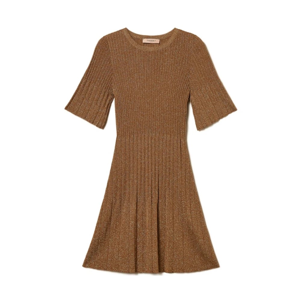 Twinset, Klänningar , Dam, XS, Lurex Stickad Ribbad Klänning