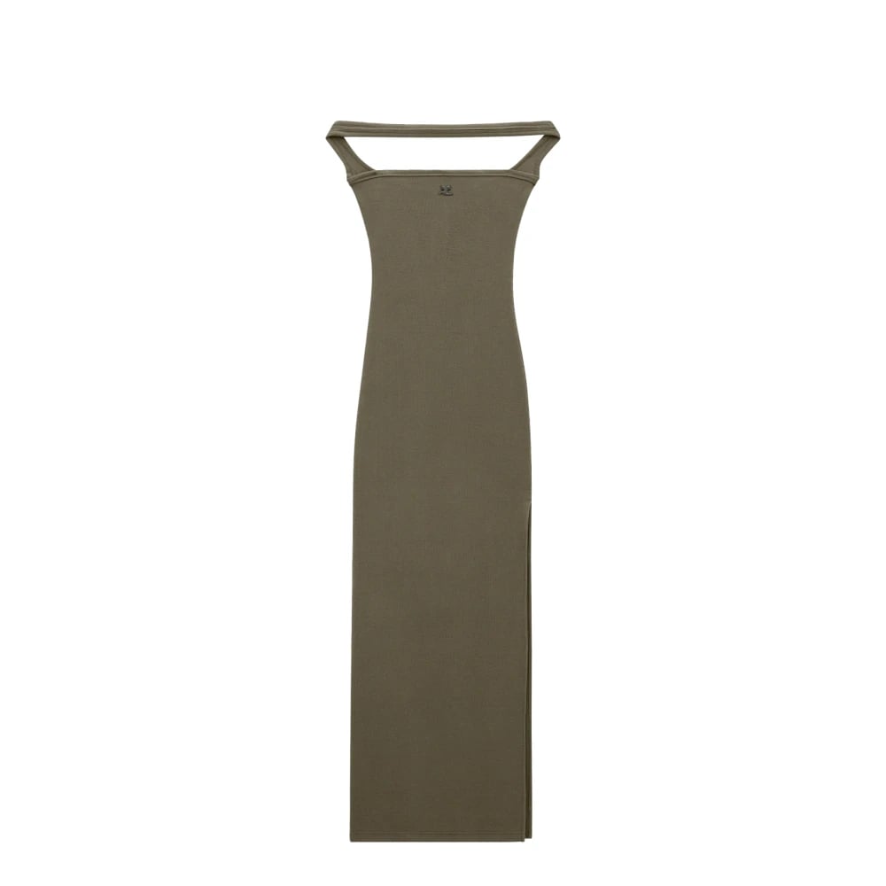Courrèges, Klänningar , Dam, M, Bomull, Brun Ribbad Klänning med Öppna Axlar