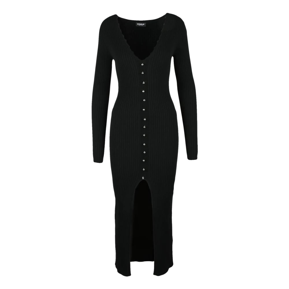Dondup, Klänningar , Dam, L, Polyester, Lång ribbad klänning med knappdetaljer