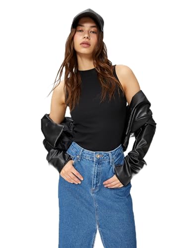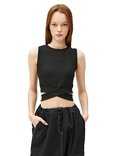 Koton Women Basic linne ribbad hållare hals, Svart (999), M