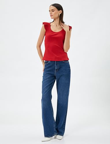 Koton kvinnor ruffle U-hals ribbad linne, Röd (401), XL