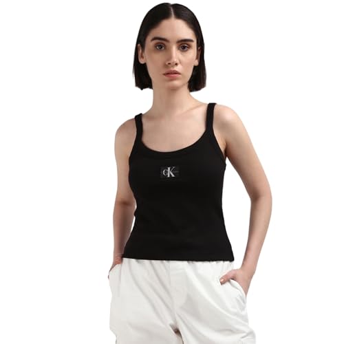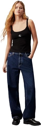 Calvin Klein Jeans dam vävd etikett ribbad båt hals linne, Ck svart, 3XL