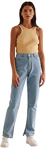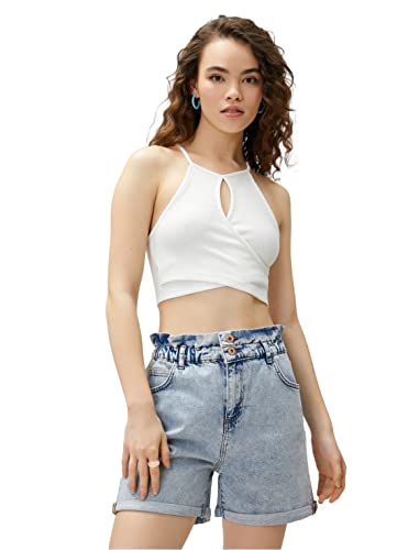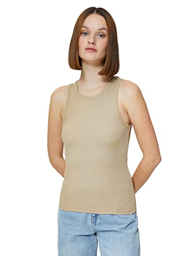 Koton Women Basic linne ribbad hållare hals, Beige (050), XL
