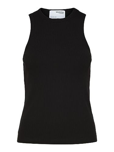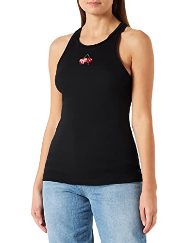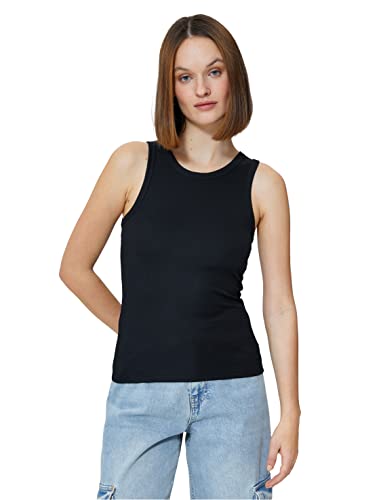 Koton dam basic ärmlös ribbad hållare hals linne topp linne, Svart (999), XS