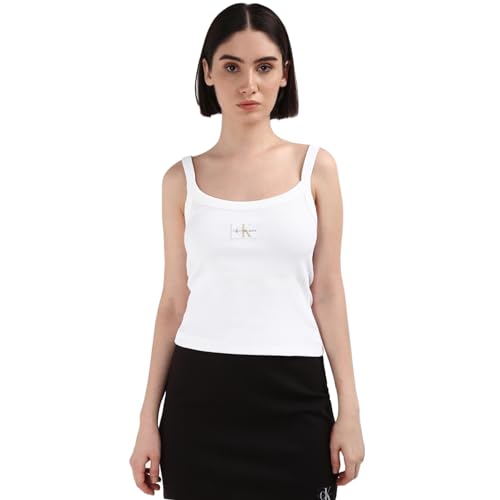 Calvin Klein Jeans dam vävd etikett ribbad båt hals linne, Kritvit, XXL
