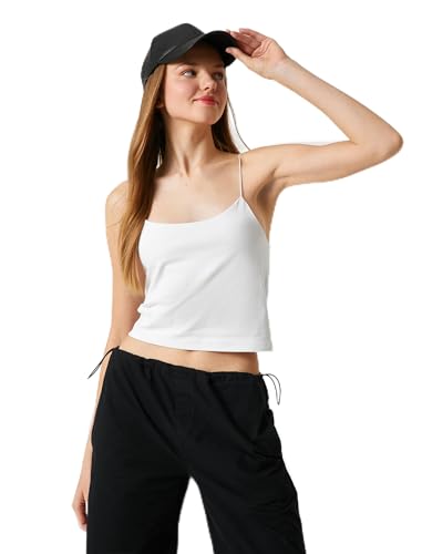 Koton Kvinnor tjocka remmar ribbad skopa hals linne, Off White (001), S