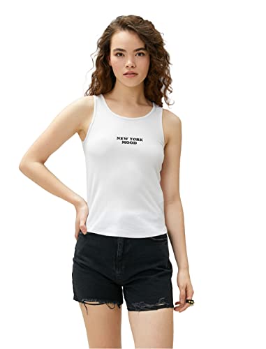 Koton kvinnor ruffle U-hals ribbad linne, Vit (00), XL