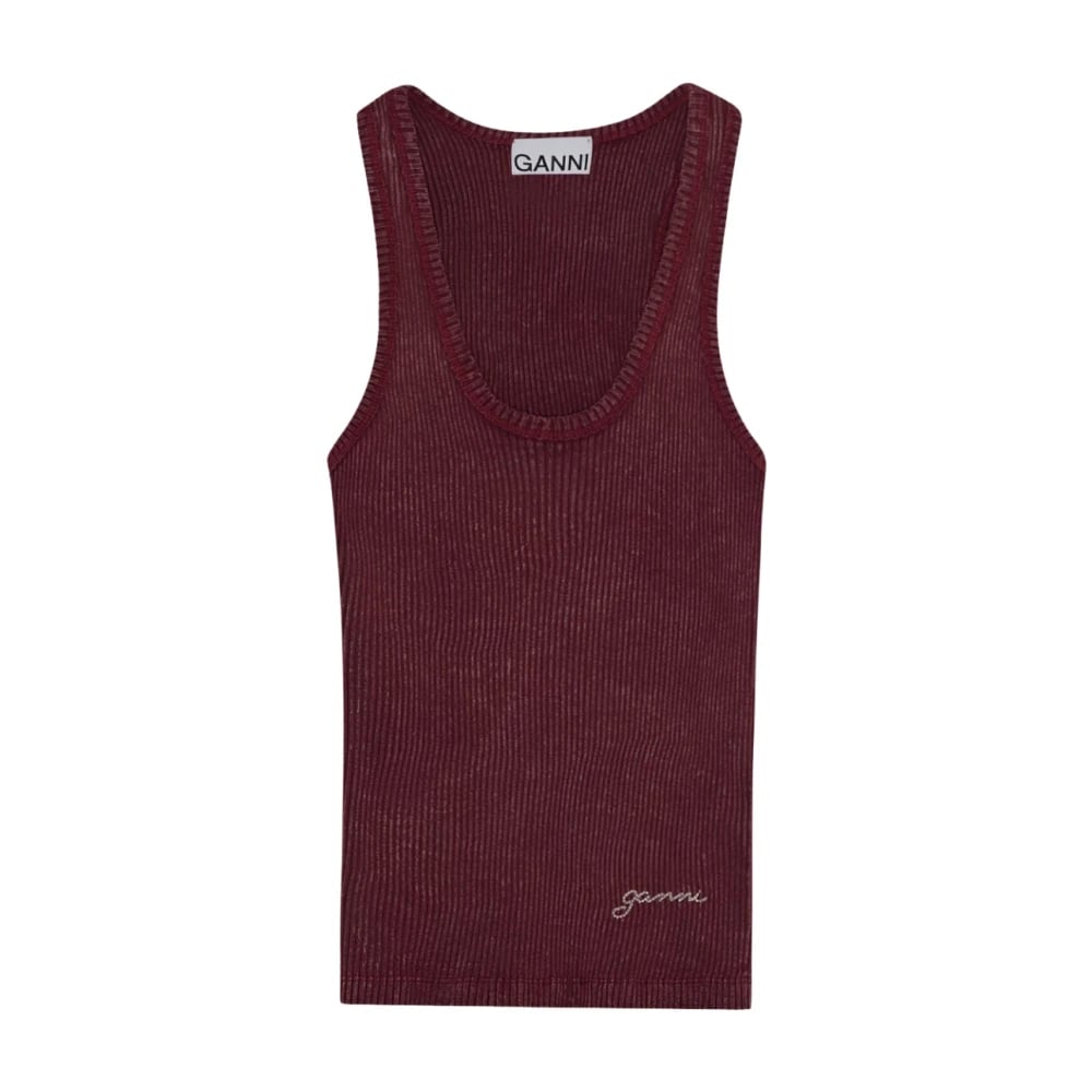 Ganni, Toppar , Dam, M, Linne, Bordeaux Ribbad Linne