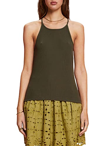 Urban Classics Dam persika ribbad halshållare linne sport topp, Grön (Oliv 00176), XL