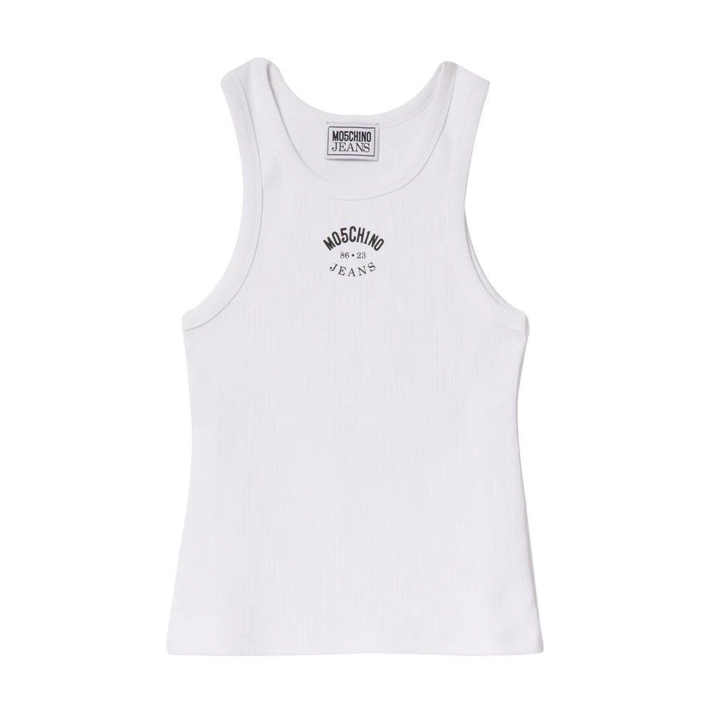 Moschino, Toppar , Dam, S, Linne, Vit Ribbad Linne med Logo