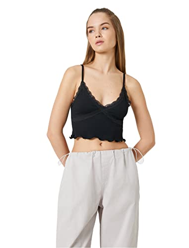 Koton kvinnor V-ringad ribbad strappy crop linne, Svart (999), L