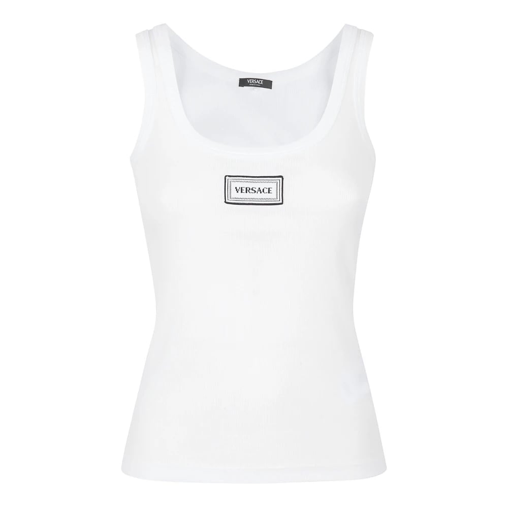 Versace, Toppar , Dam, 2Xs, Bomull, Ribbad Stretch Bomulls Linne