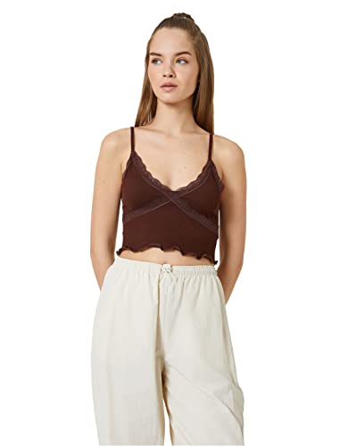 Koton kvinnor V-ringad ribbad strappy crop linne, Brun (532), XS
