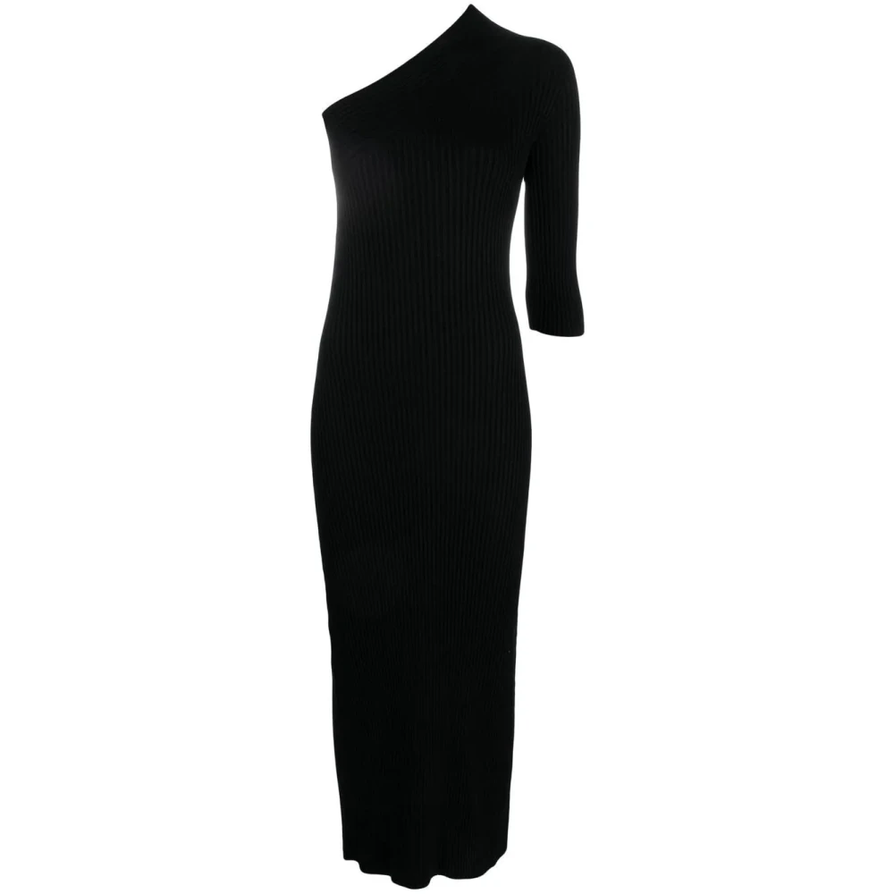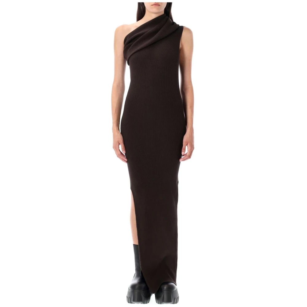 Rick Owens, Klänningar , Dam, M, Polyester, Athena Ribbad Enaxlad Maxiklänning med Draperad Detalj