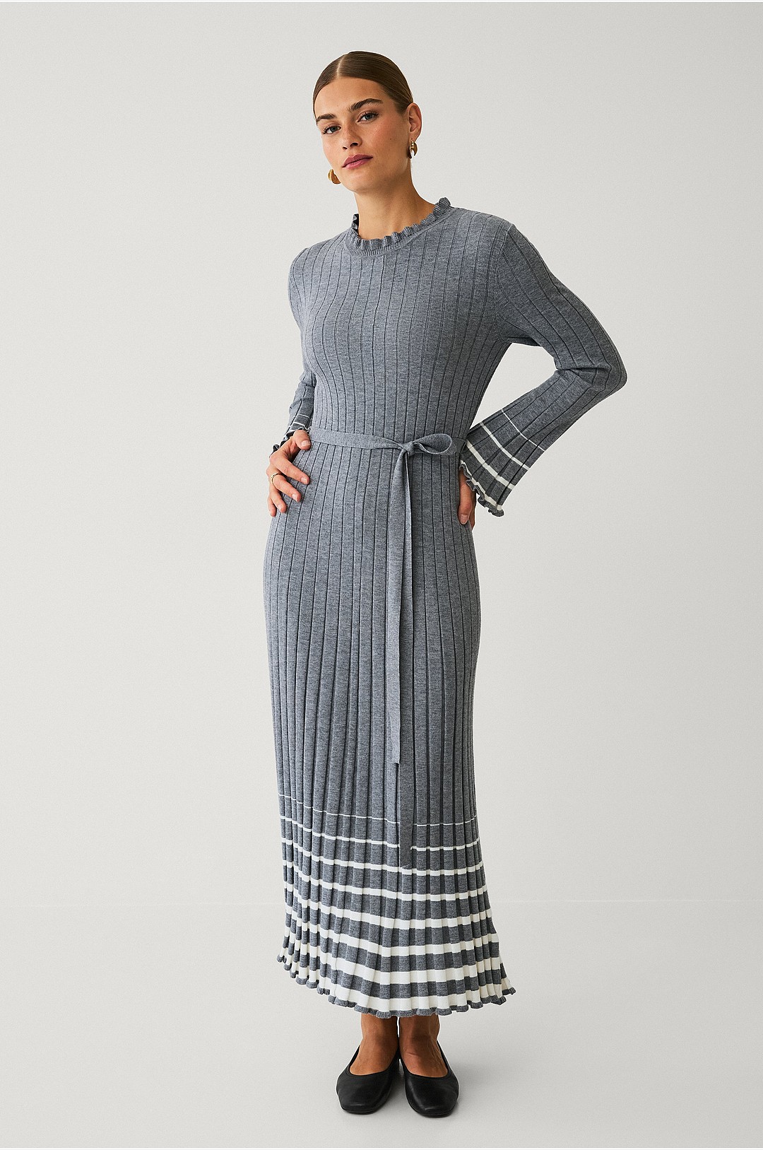 Ellos Collection - Ribbad maxiklänning - Grå
