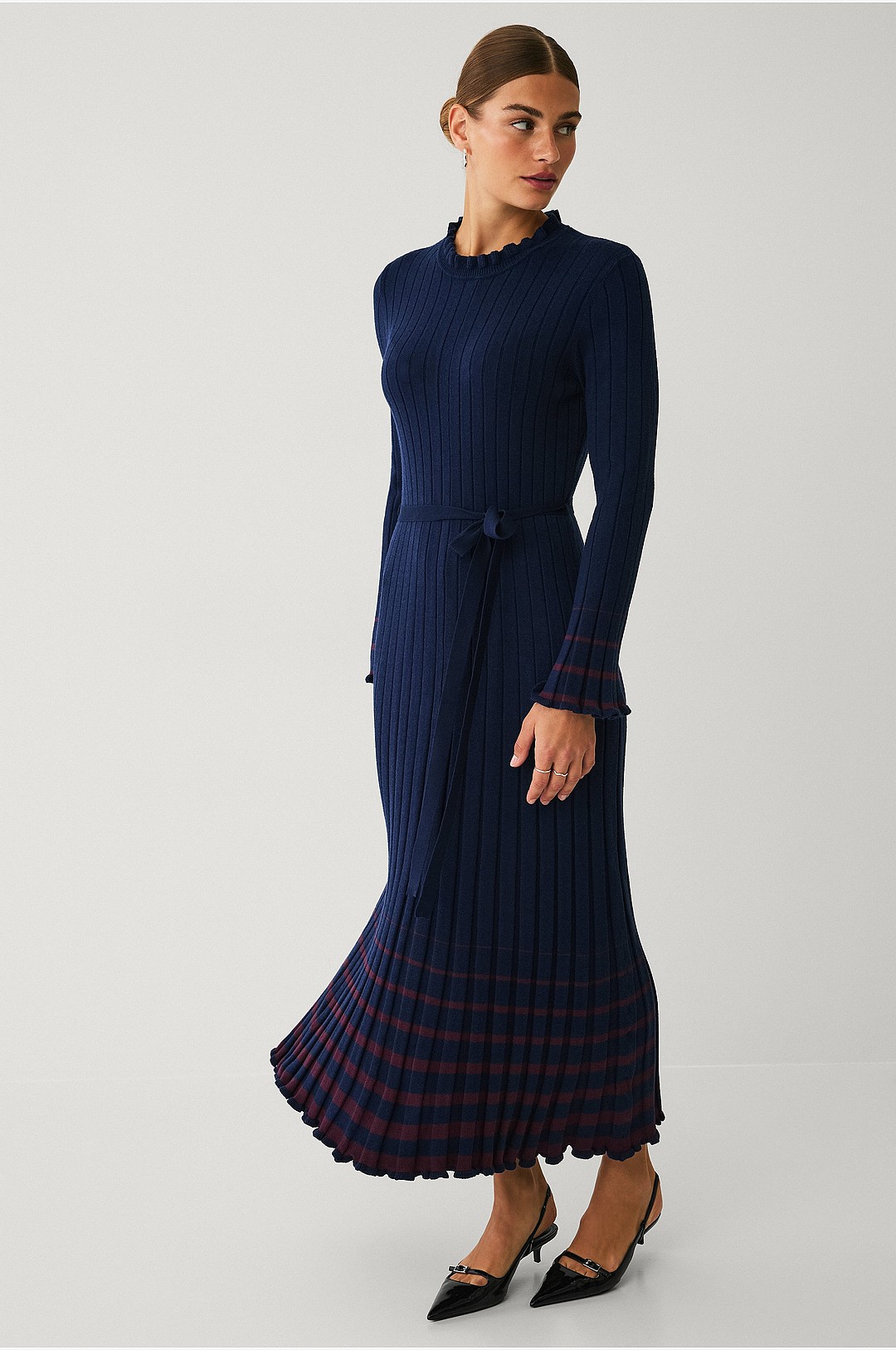 Ted Baker WMD-SANDIII-ribbad rund hals stickad kolumn maxiklänning marinblå, Marinblått Xsp, 36 SE