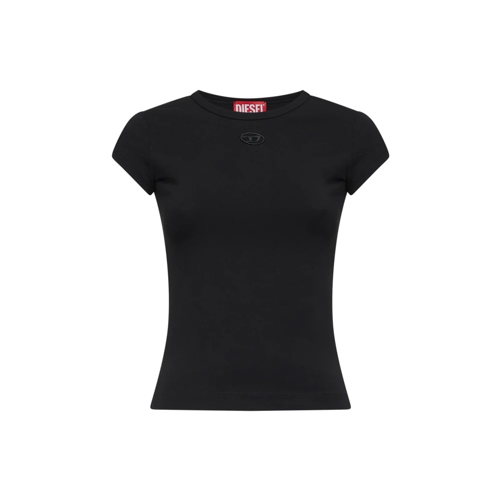 Diesel, Toppar , Dam, XS, Bomull, Ribbad T-shirt med Rund Hals