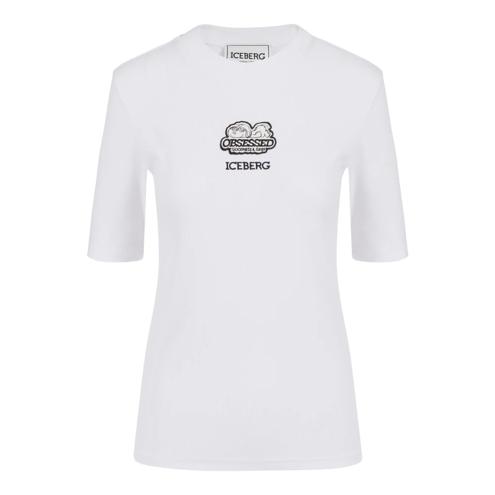 Iceberg, Toppar , Dam, XS, Slim fit ribbad T-shirt med Snoopy-patch och broderad logotyp