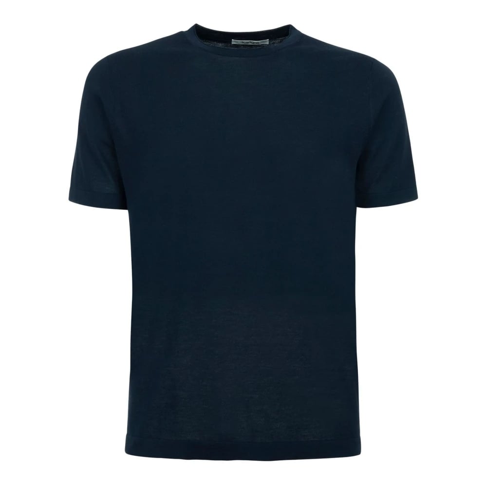 Kangra, Toppar , Herr, M, Bomull, Blå Bomull Ribbad Crewneck T-shirt