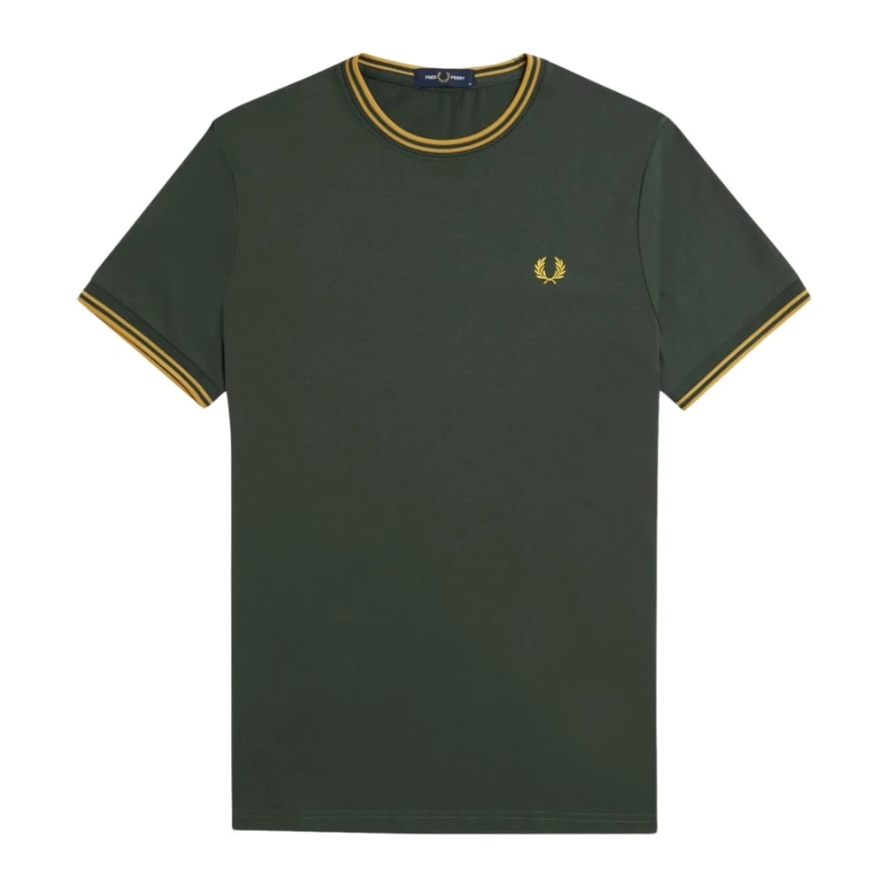 Fred Perry, Toppar , Herr, M, Grön/Gul Ribbad Hals T-shirt