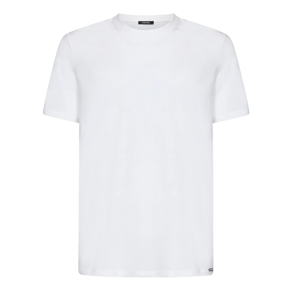 Tom Ford, Toppar , Herr, S, Bomull, Ribbad T-shirt med Rund Hals